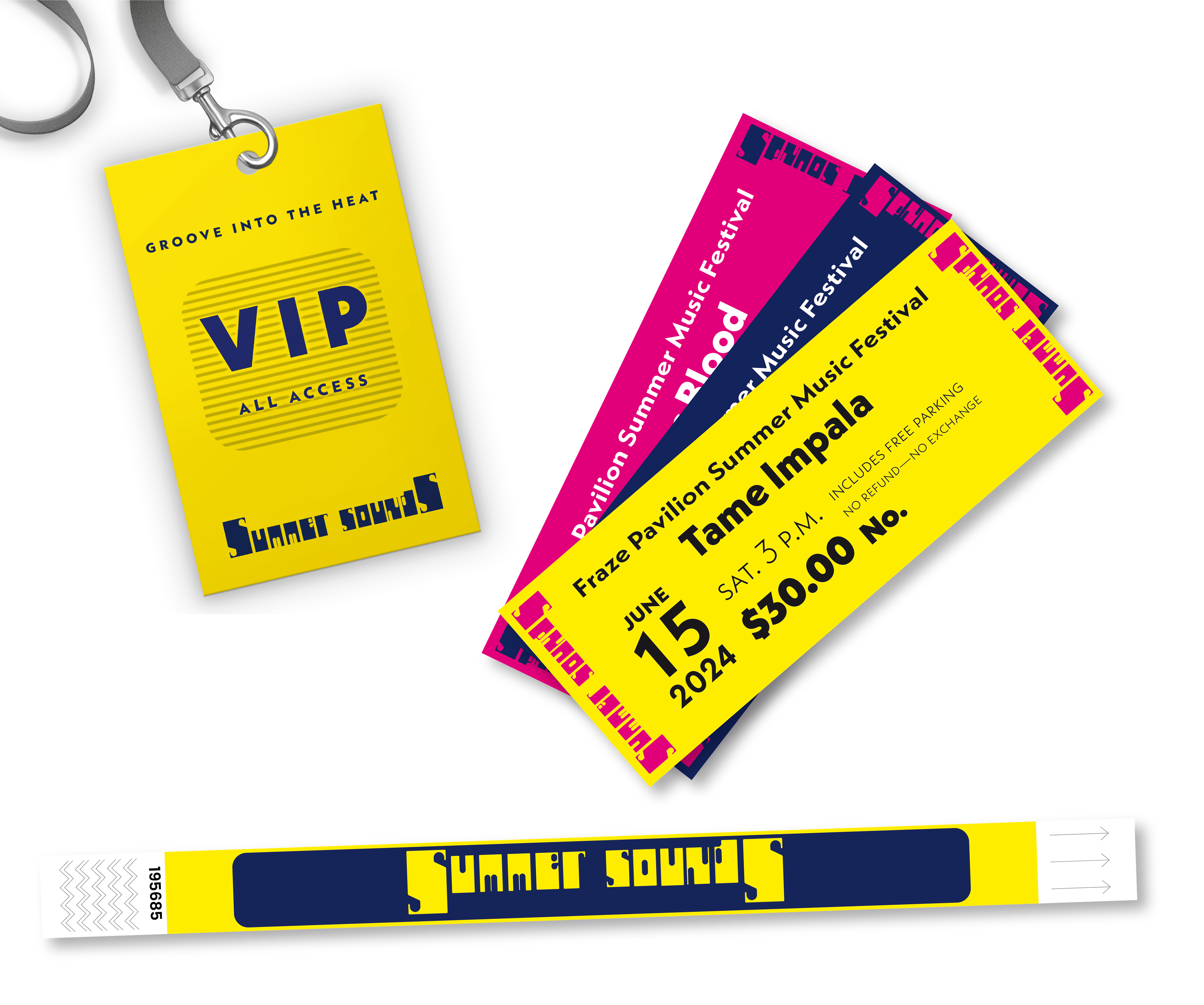 Design for Summer Sounds Music Festival brand identity and assets. (Conceptual Project)